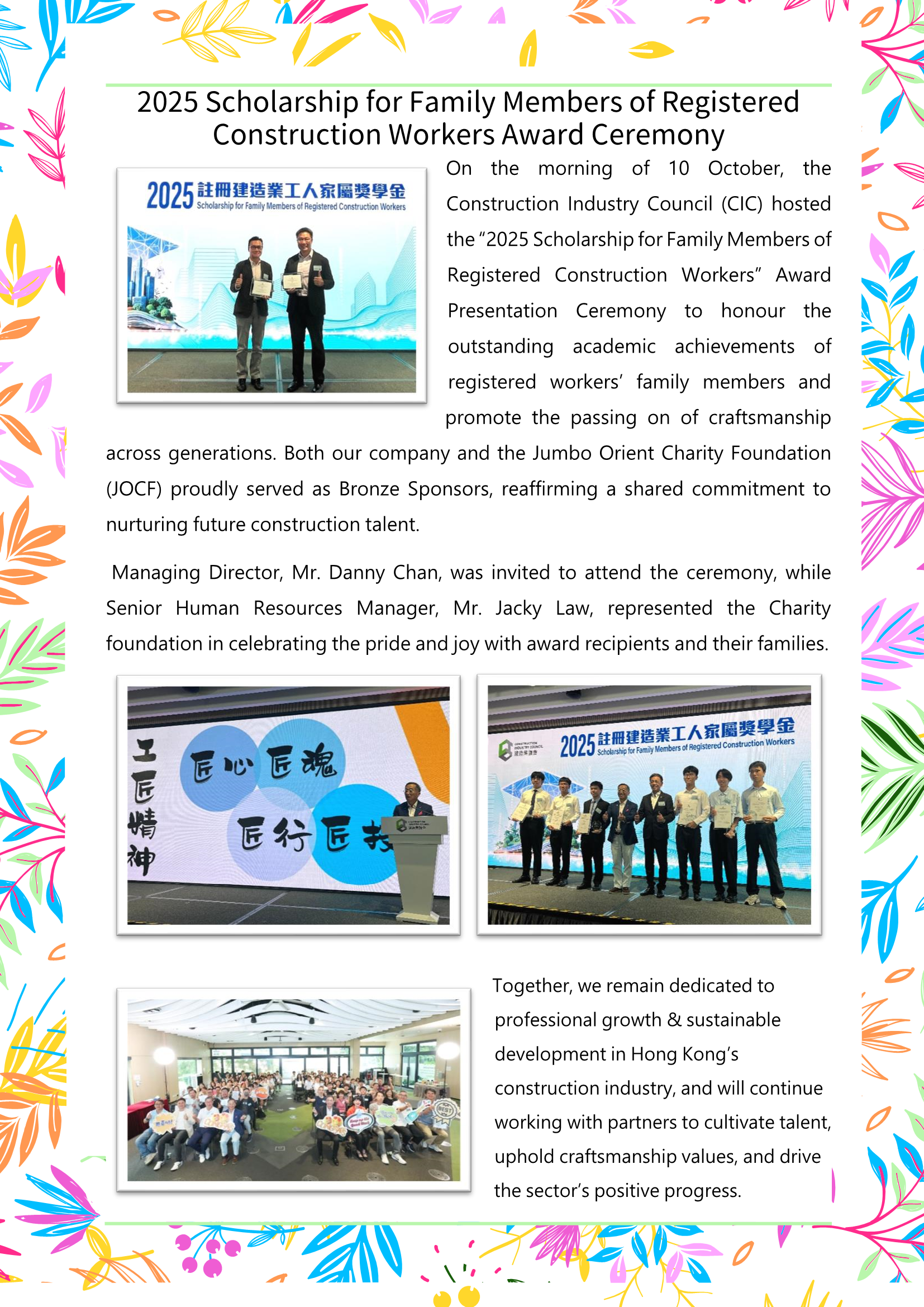 2025 Scholarship for Family Members of Registered Construction Workers Award Ceremony