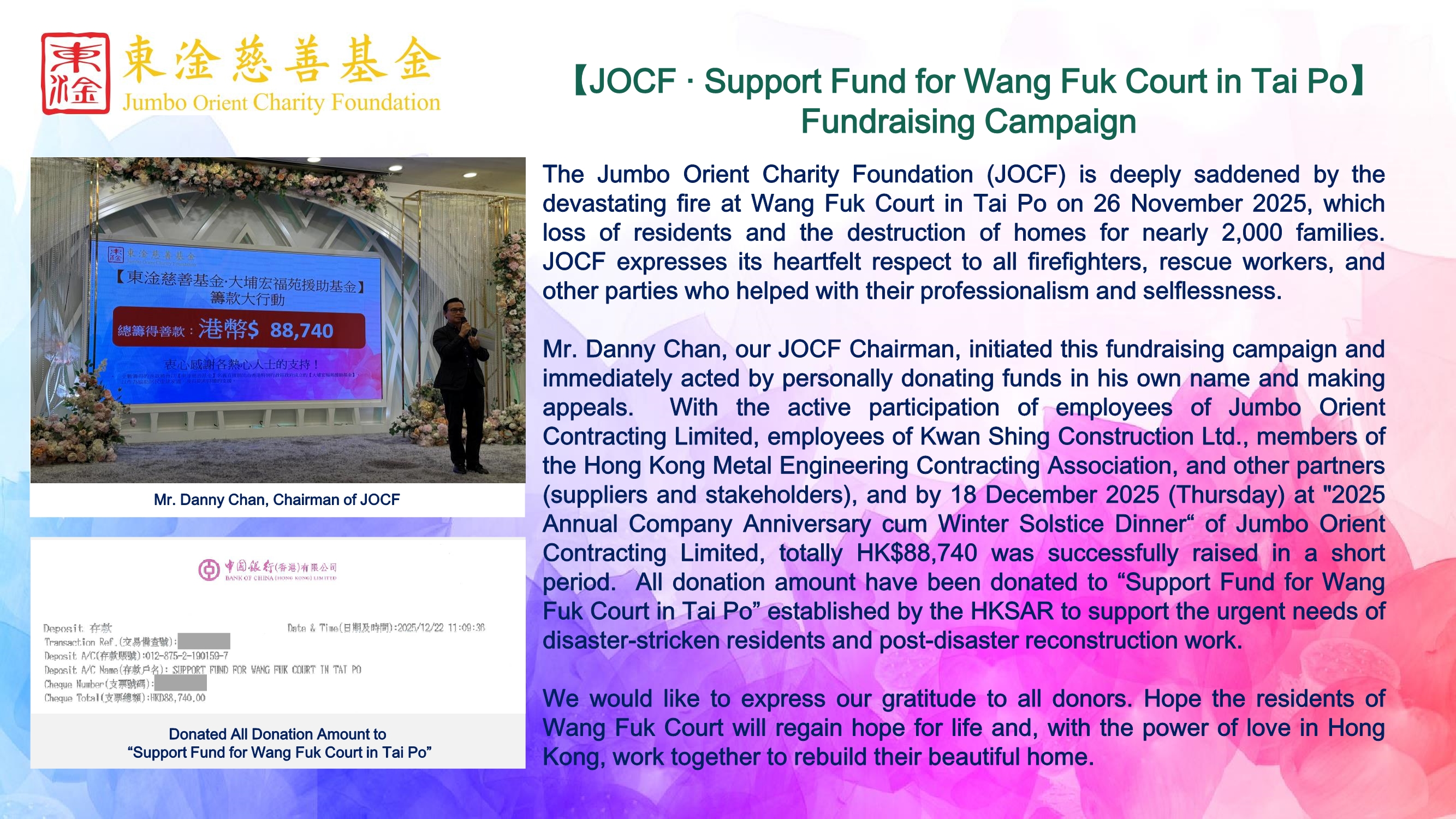 【JOCF ‧ Support Fund for Wang Fuk Court in Tai Po】 Fundraising Campaign