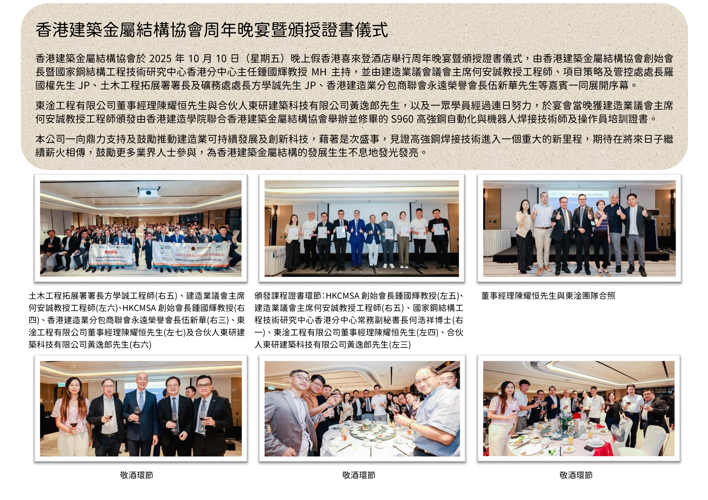 香港建築金屬結構協會周年晚宴暨頒授證書儀式