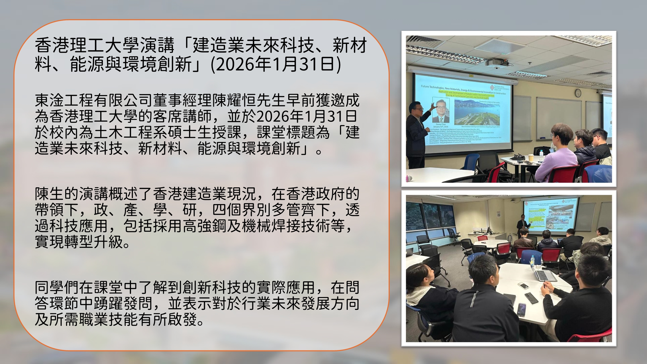 香港理工大學演講「建造業未來科技、新材料、能源與環境創新」